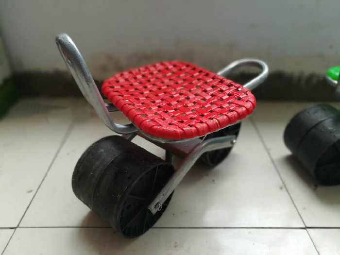 蔬菜大棚小凳子這種小凳子有兩輪,是個(gè)小車車,也叫田間小凳子,有加厚管壁的加厚輪子,干活的人坐在小凳子上,可以用屁股的力量往前挪到,四五個(gè)小時(shí)的工作量,也不會(huì)有多累。