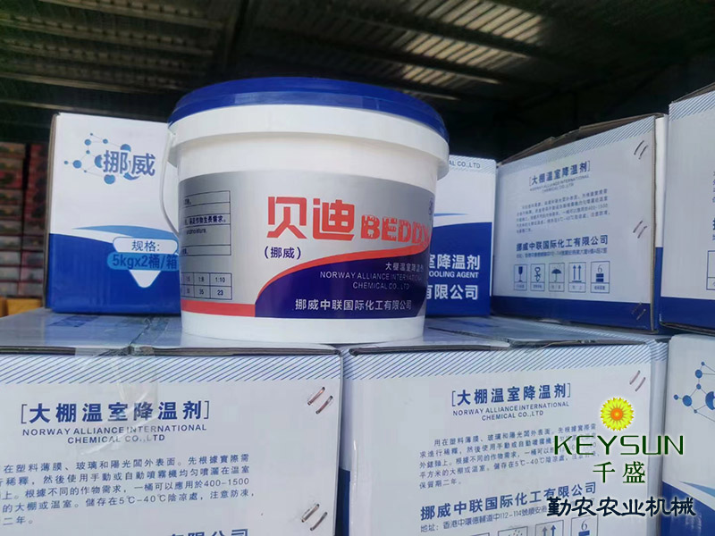山東禹城勤農(nóng)大棚降溫劑能有效解決蔬菜大棚內(nèi)強(qiáng)光和高溫問(wèn)題,為作物提供理想的溫光生長(zhǎng)環(huán)境。降溫劑在溫室表面形成白色涂層,將太陽(yáng)直射光轉(zhuǎn)變?yōu)樯⑸涔猓⒂行Х瓷洚a(chǎn)生熱量的紅外光,從而起到遮陽(yáng)、降溫、防止棚膜老化